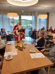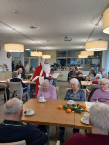 Heute besuchte uns der Samichlaus. Mit seinem roten Mantel und dem langen Bart überraschte er die Bewohner vom Sunnehof mit viel Wissen über ihre Vorlieben. Umrahmt wurde der Anlass von Peter Bindt mit weihnächtlicher Musik. Bewohner und Gäste durften einen spannenden und vorweihnächtlichen Nachmittag verbringen.