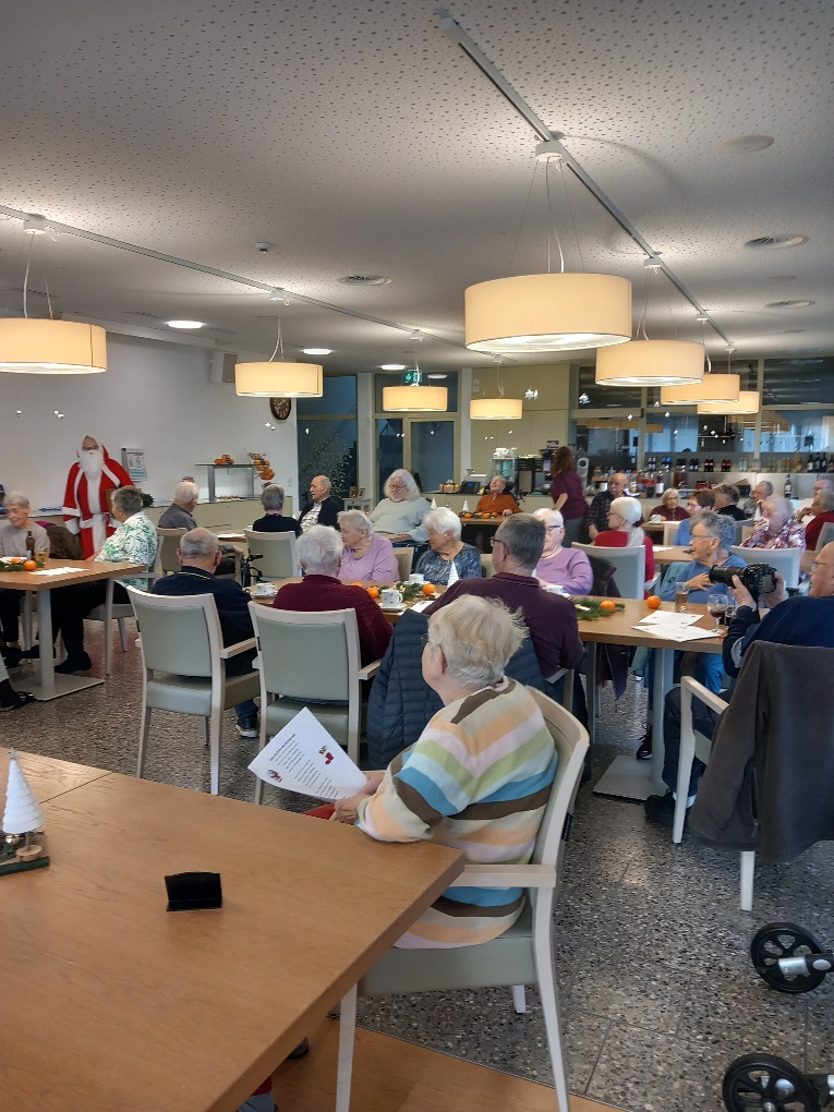 Heute besuchte uns der Samichlaus. Mit seinem roten Mantel und dem langen Bart überraschte er die Bewohner vom Sunnehof mit viel Wissen über ihre Vorlieben. Umrahmt wurde der Anlass von Peter Bindt mit weihnächtlicher Musik. Bewohner und Gäste durften einen spannenden und vorweihnächtlichen Nachmittag verbringen.